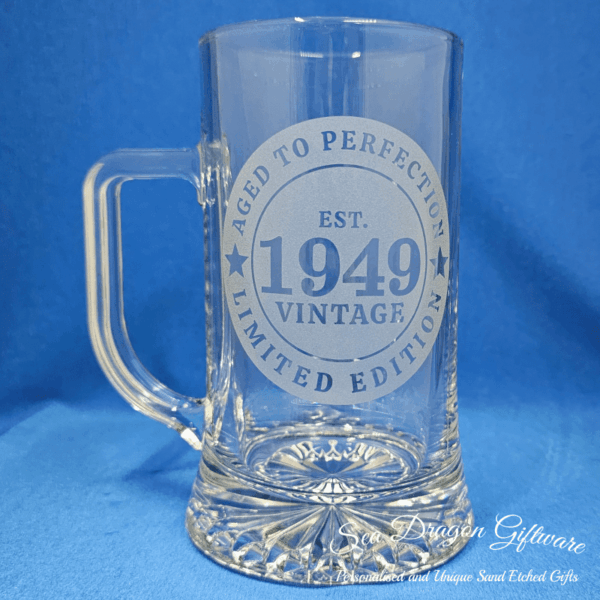 Each and every stein/beer mug #2 that Sea Dragon Giftware creates is individually sand etched / carved / engraved using a sandblasting process.