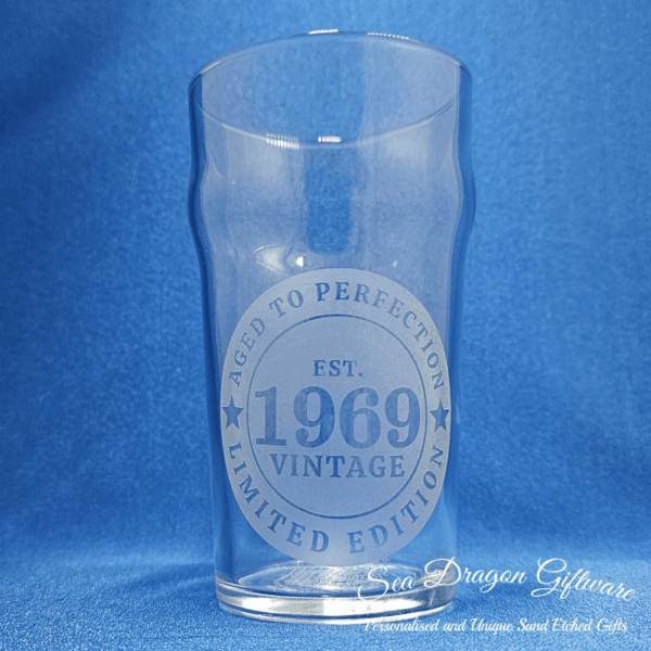 Each and every nonic pint beer glass that Sea Dragon Giftware creates is individually sand etched / carved / engraved using a sandblasting process.