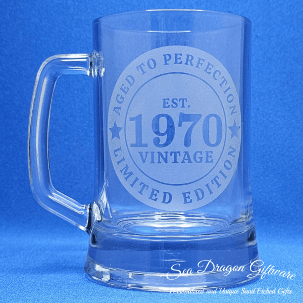 Every stein/beer mug #1 that Sea Dragon Giftware creates is individually sand etched/carved/engraved using a sandblasting process.