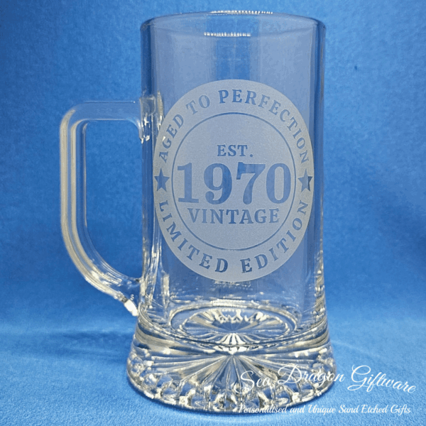 Each and every stein/beer mug #2 that Sea Dragon Giftware creates is individually sand etched / carved / engraved using a sandblasting process.