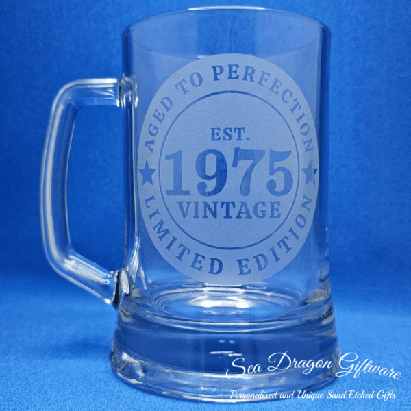 Every stein/beer mug #1 that Sea Dragon Giftware creates is individually sand etched/carved/engraved using a sandblasting process.