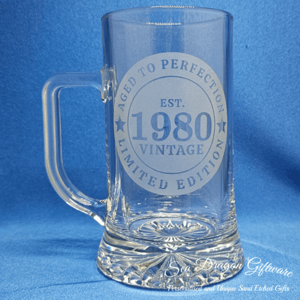 Each and every stein/beer mug #2 that Sea Dragon Giftware creates is individually sand etched / carved / engraved using a sandblasting process.