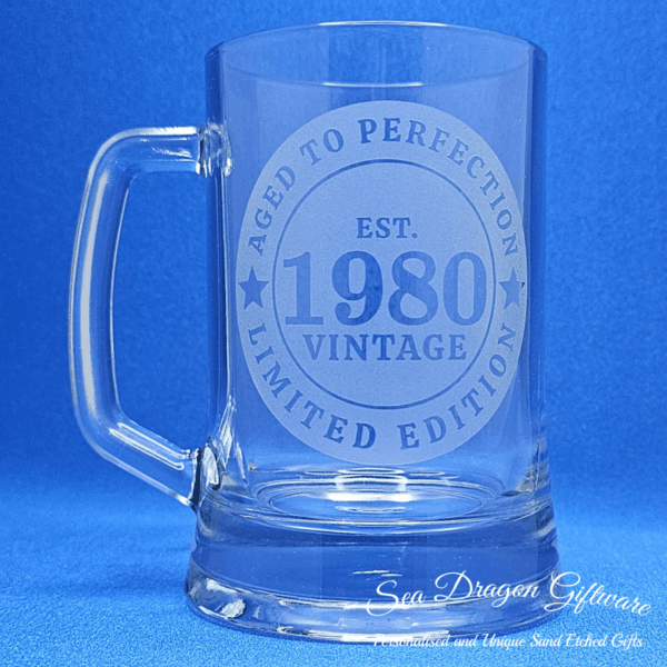 Every stein/beer mug #1 that Sea Dragon Giftware creates is individually sand etched/carved/engraved using a sandblasting process.