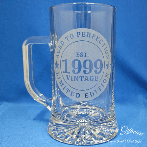 Each and every stein/beer mug #2 that Sea Dragon Giftware creates is individually sand etched / carved / engraved using a sandblasting process.