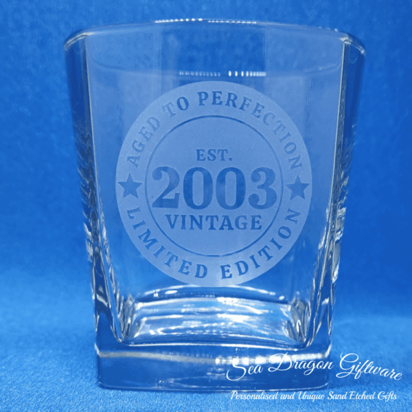 Each and every quartet spirit glass that Sea Dragon Giftware creates is individually sand etched / carved / engraved using a sandblasting process.