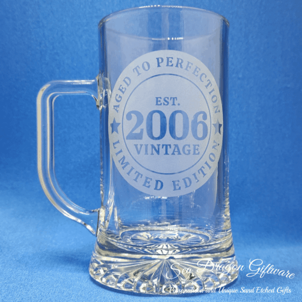 Each and every stein/beer mug #2 that Sea Dragon Giftware creates is individually sand etched / carved / engraved using a sandblasting process.