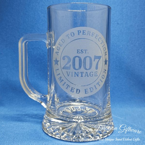 Each and every stein/beer mug #2 that Sea Dragon Giftware creates is individually sand etched / carved / engraved using a sandblasting process.