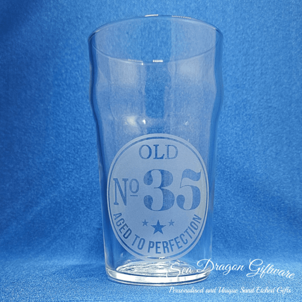 Each and every nonic pint beer glass that Sea Dragon Giftware creates is individually sand etched / carved / engraved using a sandblasting process.