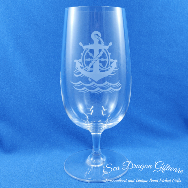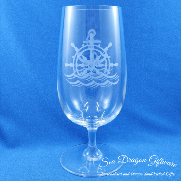 Each and every stemmed beer glass that Sea Dragon Giftware creates is individually sand etched / carved / engraved using a sandblasting process.