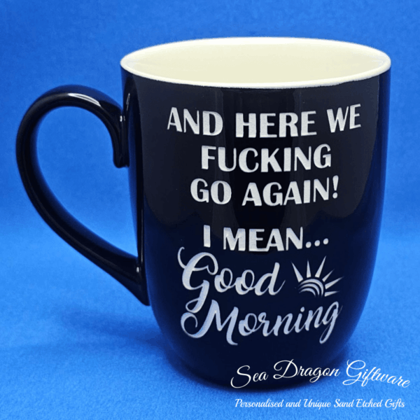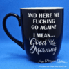 Ceramic Coffee/ Tea Mug: And Here We Fucking Go Again! I Mean Good Morning – Black Gloss