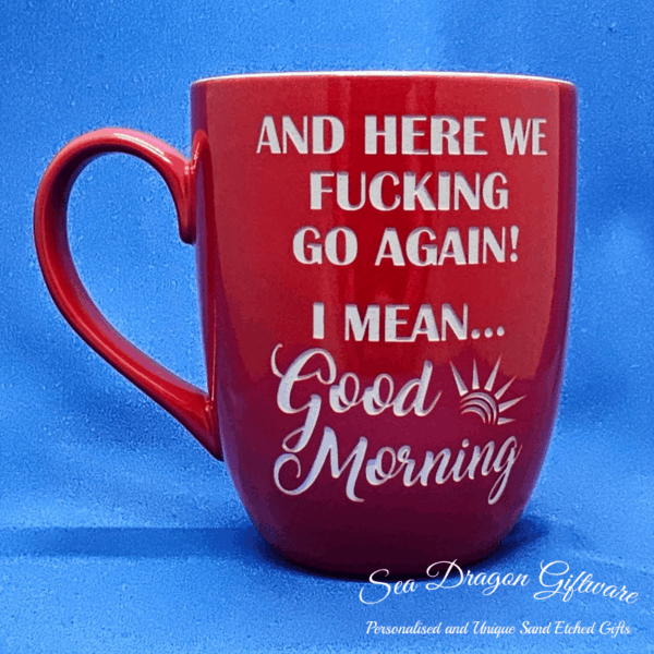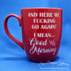 Ceramic Coffee/ Tea Mug: And Here We Fucking Go Again! I Mean… Good Morning – Red