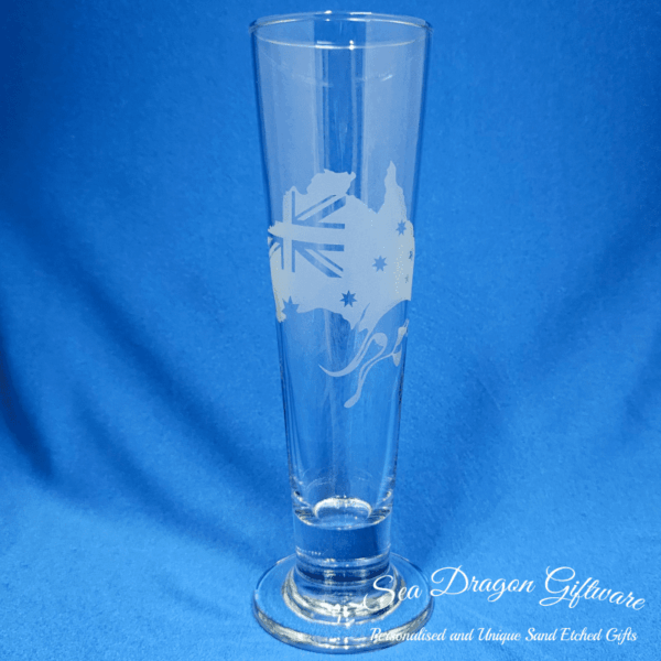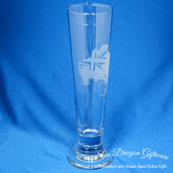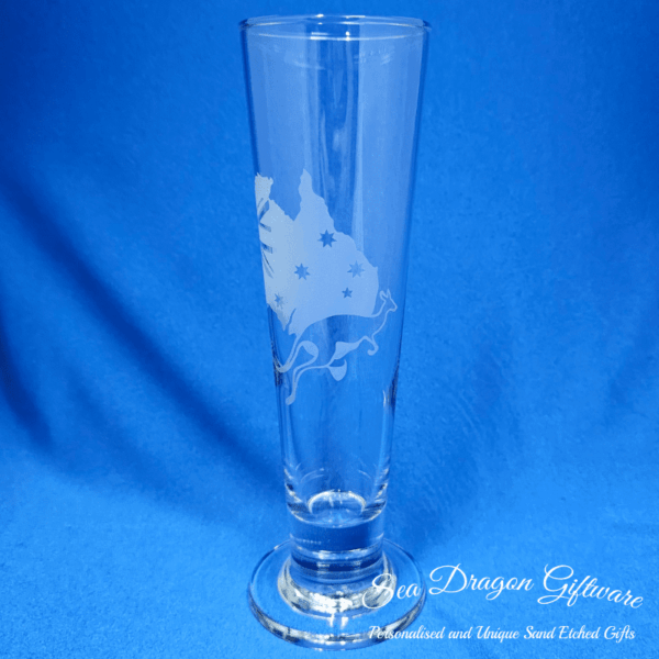 Each and every pilsner footed beer glass that Sea Dragon Giftware creates is individually sand etched / carved / engraved using a sandblasting process.