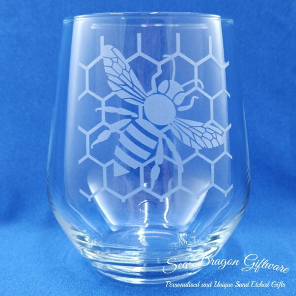 Each and every stemless wine glass that Sea Dragon Giftware creates is individually sand etched / carved / engraved using a sandblasting process.