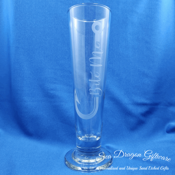 Each and every pilsner footed beer glass that Sea Dragon Giftware creates is individually sand etched / carved / engraved using a sandblasting process.