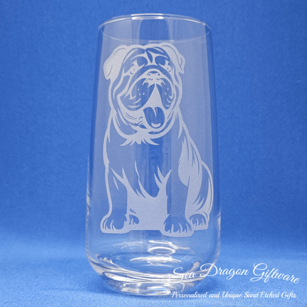 Bulldog Engraved Tall Tumbler Glass Set x 6