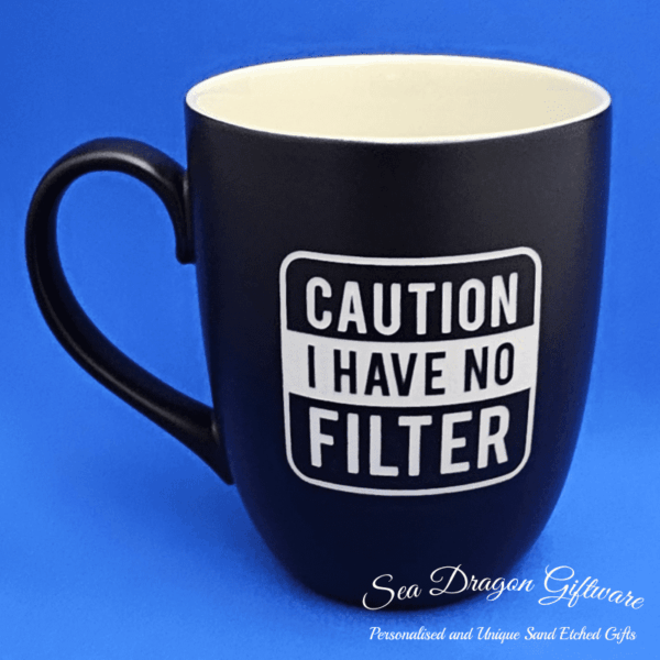 Each and every ceramic coffee/tea mug that Sea Dragon Giftware creates is individually sand etched / carved / engraved using a sandblasting process.