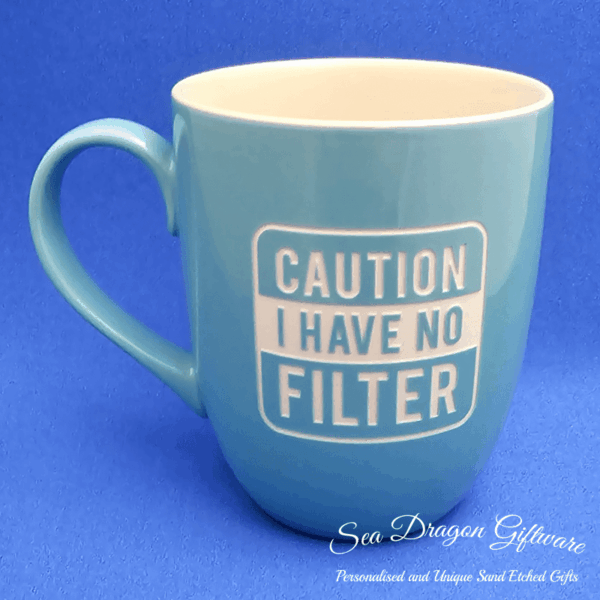 Each and every ceramic coffee/tea mug that Sea Dragon Giftware creates is individually sand etched / carved / engraved using a sandblasting process.