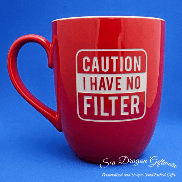 Each and every ceramic coffee/tea mug that Sea Dragon Giftware creates is individually sand etched / carved / engraved using a sandblasting process.