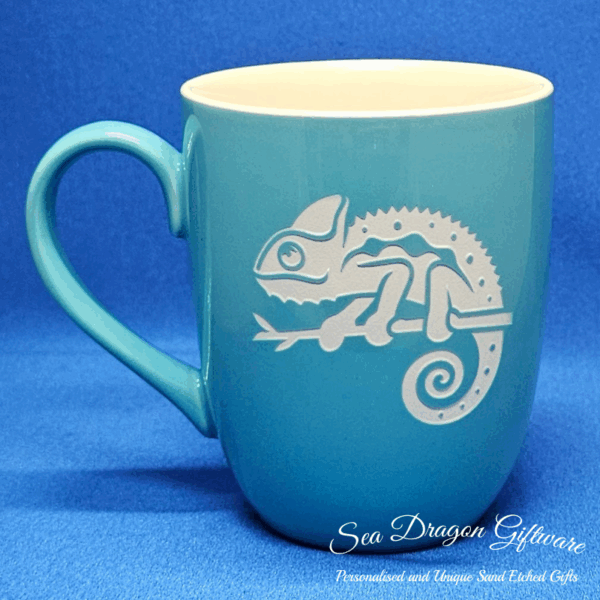 Each and every ceramic coffee/tea mug that Sea Dragon Giftware creates is individually sand etched / carved / engraved using a sandblasting process.