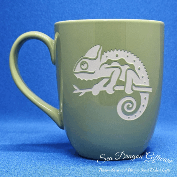 Each and every ceramic coffee/tea mug that Sea Dragon Giftware creates is individually sand etched / carved / engraved using a sandblasting process.