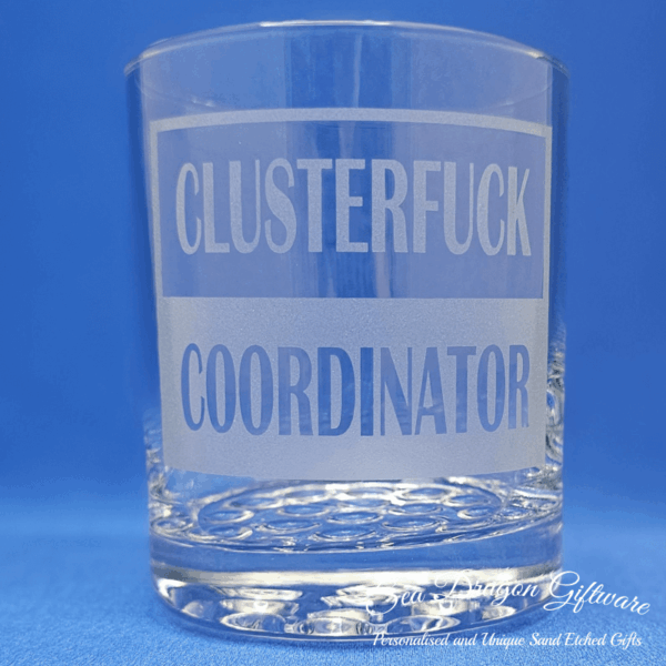 Clusterfuck Coordinator – Sand Etched/Engraved Dimple Spirit Glass