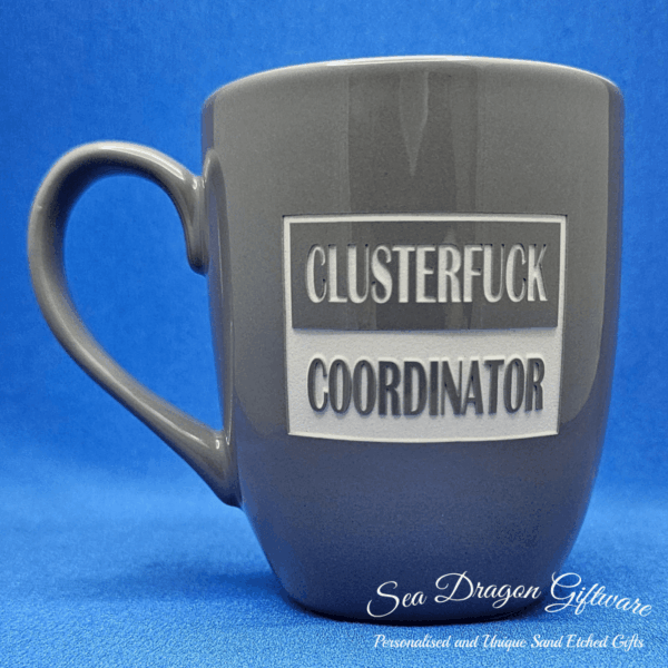 Clusterfuck Coordinator – Engraved Grey Ceramic Coffee/Tea Mug