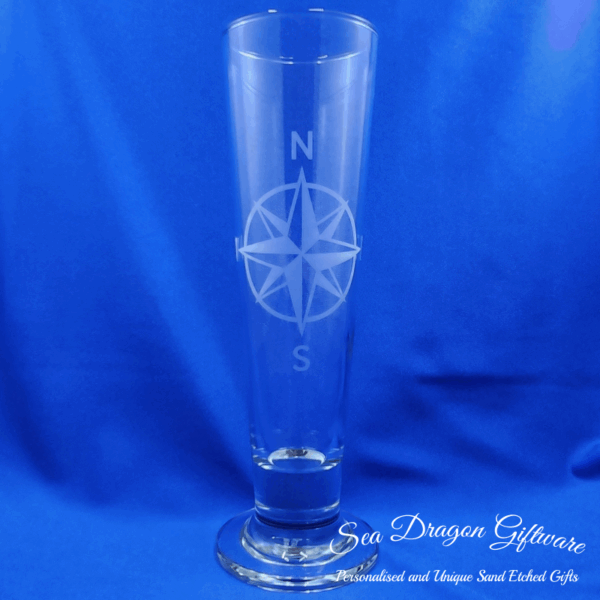 Each and every pilsner footed beer glass that Sea Dragon Giftware creates is individually sand etched / carved / engraved using a sandblasting process.