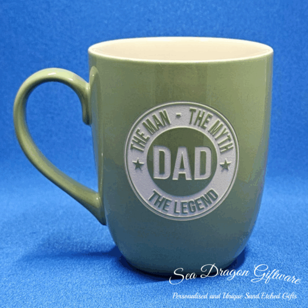 Each and every ceramic coffee/tea mug that Sea Dragon Giftware creates is individually sand etched / carved / engraved using a sandblasting process.