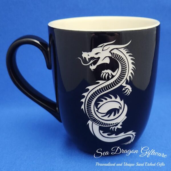 Each and every ceramic coffee/tea mug that Sea Dragon Giftware creates is individually sand etched / carved / engraved using a sandblasting process.