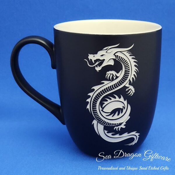 Each and every ceramic coffee/tea mug that Sea Dragon Giftware creates is individually sand etched / carved / engraved using a sandblasting process.