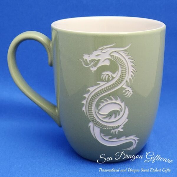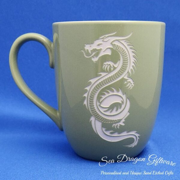 Each and every ceramic coffee/tea mug that Sea Dragon Giftware creates is individually sand etched / carved / engraved using a sandblasting process.