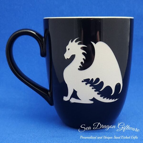 Each and every ceramic coffee/tea mug that Sea Dragon Giftware creates is individually sand etched / carved / engraved using a sandblasting process.