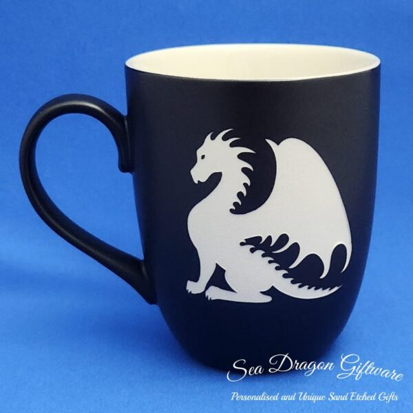 Each and every ceramic coffee/tea mug that Sea Dragon Giftware creates is individually sand etched / carved / engraved using a sandblasting process.
