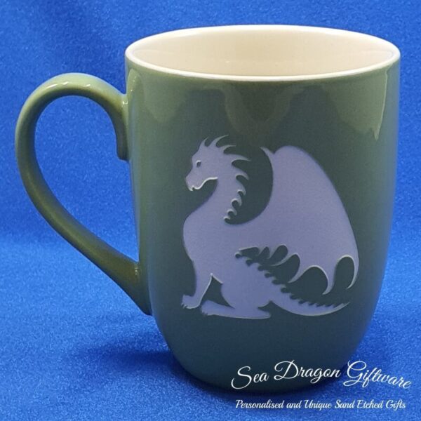 Each and every ceramic coffee/tea mug that Sea Dragon Giftware creates is individually sand etched / carved / engraved using a sandblasting process.