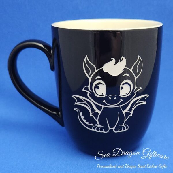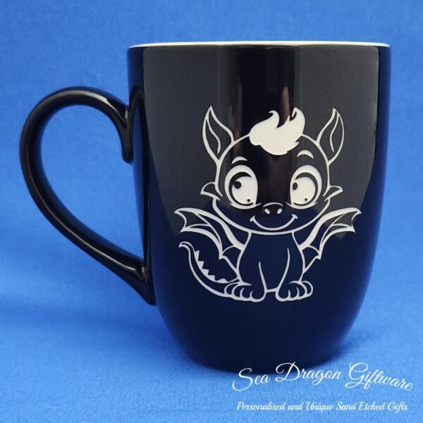 Each and every ceramic coffee/tea mug that Sea Dragon Giftware creates is individually sand etched / carved / engraved using a sandblasting process.