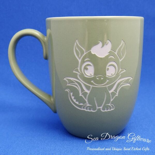 Each and every ceramic coffee/tea mug that Sea Dragon Giftware creates is individually sand etched / carved / engraved using a sandblasting process.