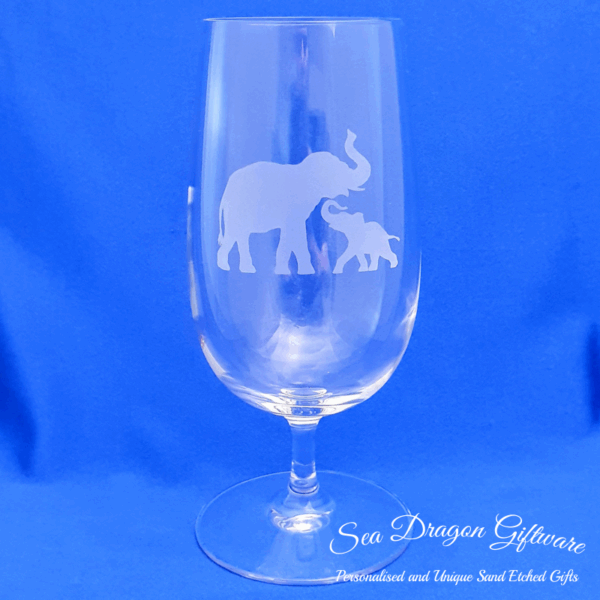 Each and every stemmed beer glass that Sea Dragon Giftware creates is individually sand etched / carved / engraved using a sandblasting process.