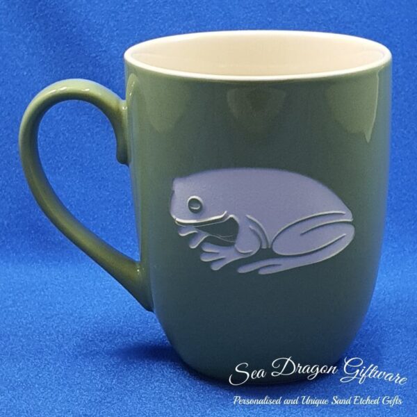 Each and every ceramic coffee/tea mug that Sea Dragon Giftware creates is individually sand etched / carved / engraved using a sandblasting process.