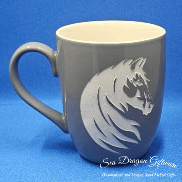 Each and every ceramic coffee/tea mug that Sea Dragon Giftware creates is individually sand etched / carved / engraved using a sandblasting process.