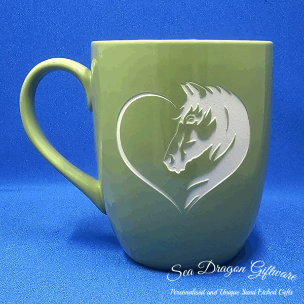 Each and every ceramic coffee/tea mug that Sea Dragon Giftware creates is individually sand etched / carved / engraved using a sandblasting process.