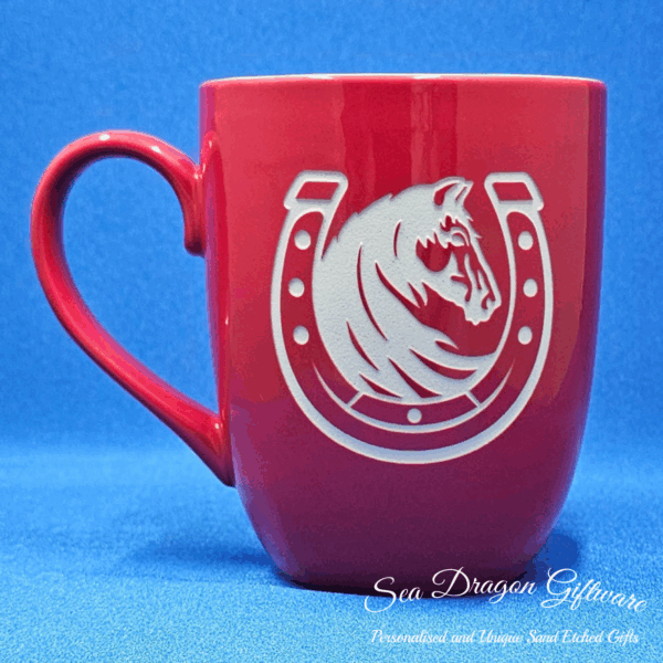 Each and every ceramic coffee/tea mug that Sea Dragon Giftware creates is individually sand etched / carved / engraved using a sandblasting process.