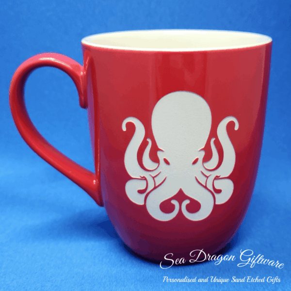 Each and every ceramic coffee/tea mug that Sea Dragon Giftware creates is individually sand etched / carved / engraved using a sandblasting process.