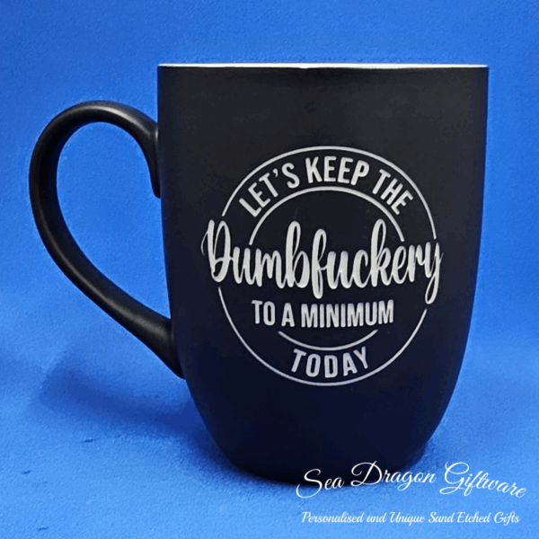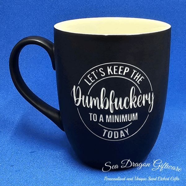 Each and every ceramic coffee/tea mug that Sea Dragon Giftware creates is individually sand etched / carved / engraved using a sandblasting process.