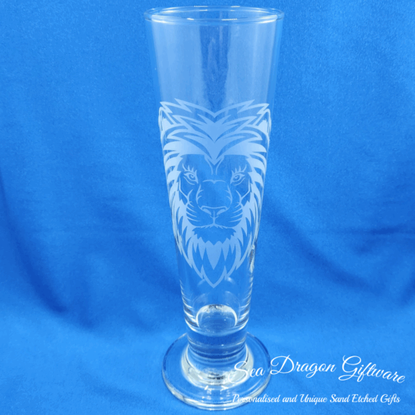 Each and every pilsner footed beer glass that Sea Dragon Giftware creates is individually sand etched / carved / engraved using a sandblasting process.