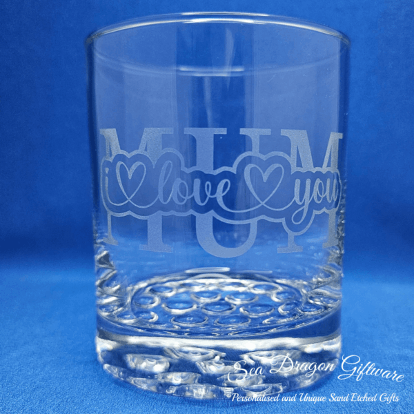 Mum – I Love You – Sand Etched/Engraved Dimple Spirit Glass