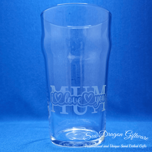 Mum – I Love You – Sand Etched/Engraved Pint Beer Glass (Nonic)