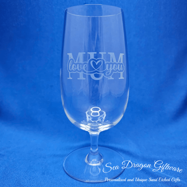 Mum Love You – Sand Etched/Engraved Stemmed Beer Glass