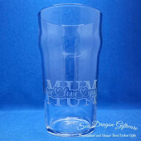 Mum – We Love You – Sand Etched/Engraved Pint Beer Glass (Nonic)