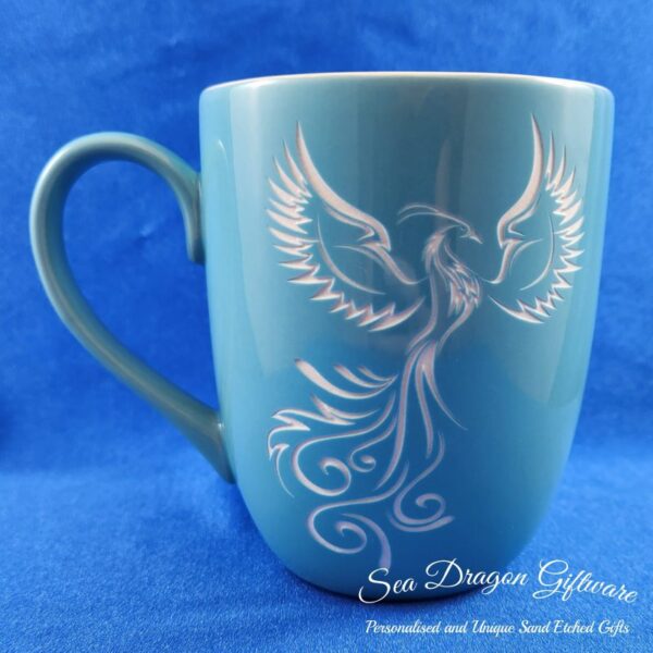 Each and every ceramic coffee/tea mug that Sea Dragon Giftware creates is individually sand etched / carved / engraved using a sandblasting process.