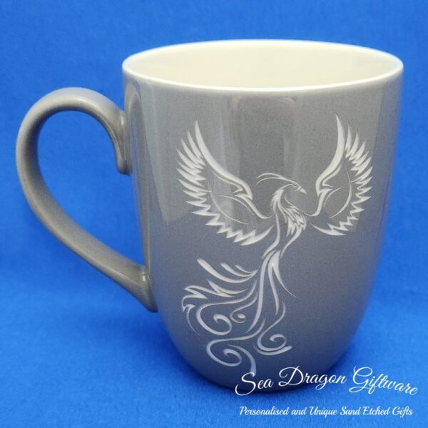 Each and every ceramic coffee/tea mug that Sea Dragon Giftware creates is individually sand etched / carved / engraved using a sandblasting process.